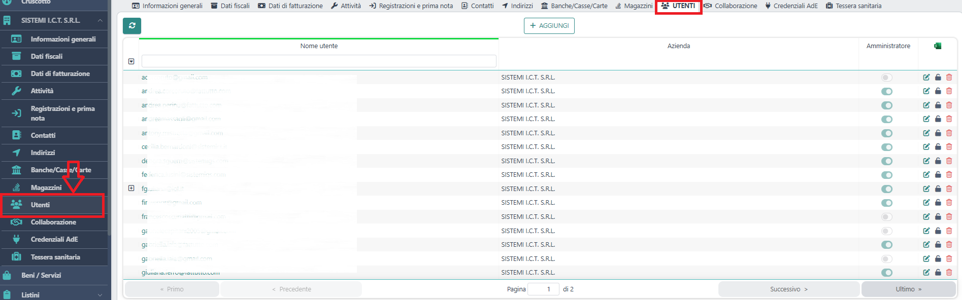 Posizionatevi sulla pagina Utenti nel menu della vostra azienda