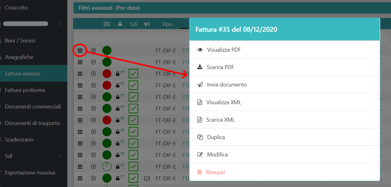 1. Modifica icone di stato invio a SdI (vai a dettaglio)