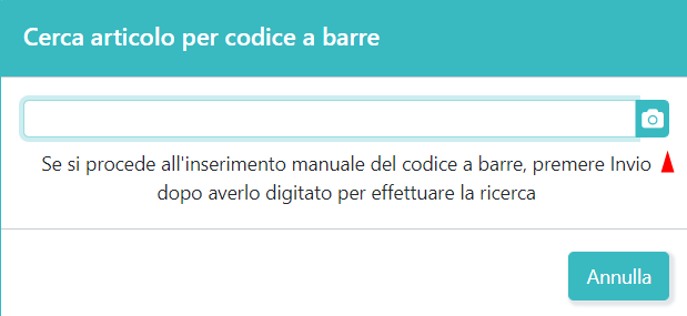 - inserire il codice a barre manualmente e premere il tasto INVIO o TAB della tastiera;